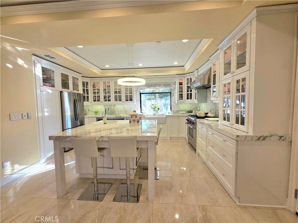 $9,946Stunning 5-Bedroom Estate with Garden Oasis and Dual Garages. One of the top world-renowned architects designed this custom home for a Life of luxury. Welcome to this extraordinary 5-bedroom, 4-bath home that exudes elegance and comfort from the moment you enter. The grand foyer boasts 21-foot-high ceilings and a sweeping staircase adorned with an elegant chandelier, opening into a spacious living room featuring a marble fireplace. There is an abundance of natural light from the extra-tall custom dual-pane windows and beautiful bay windows in all the rooms, complemented by plantation shutters and a view of the garden. Step outside to a lush garden paradise with over 50 fruit and flower trees, including lemons, oranges, grapefruit, peaches, persimmons, guava, as well as a vegetable and herb garden—a true farm-to-table experience right in your backyard. Enjoy the best quality foods grown in a beautiful garden of flowers and fruit trees. Fresh Herbs and vegetables to live a healthier longer life. The gourmet chef kitchen has been fully remodeled with one of the most expensive marble from Italy. All appliances are included: a high-end Wolf range with a 5-burner stove, stainless hood, refrigerator, dishwasher, washer, and dryer—all included. There's exquisite, expensive Italian marble, including White Statuario, in the kitchen and bathrooms, as well as on countertops, walls, backsplashes, and bathroom floors. There are 2 bedrooms and 2 bathrooms downstairs, and 2 bedrooms and 2 bathrooms upstairs, this home offers the perfect blend of functionality and privacy. Each spa-like bathroom is designed, like a 5-star hotel, with walk-in showers featuring multi-water jets, and a jacuzzi tub and bath with exquisite marble vanities. The sauna even features a private sauna for the ultimate relaxation. The 5th bedroom is a detached 2-car garage in the backyard, currently used as a mother-in-law's quarter with its own entrance, which could be converted to an ADU. The property is fully gated, offering privacy and ample parking with a 2-car garage that faces the side rather than the street for extra privacy. There are 5 cars that could fit in front of the driveway, 2 cars fit behind the automatic iron gate. There is a second detached garage that could be turned into 2 ADUs, potentially for additional income and use as an Airbnb. This home combines luxury living, practicality, and the serenity of nature—all in one remarkable package.